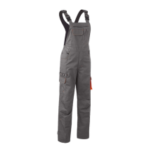 Kepr: 65 % polyester / 32 % bavlna / 3 % elastan - 250 g/m2 + polyamidové/elastické kliny + luxusný Oxford 300D. Vysoký chrbát, 9 vreciek, 2 pútka na nástroje, elastické výstuhy, elastický pás, elastický panel v rozkroku, chrániče kolien, kontrastný farebný dizajn, trojité prešívanie, extra lem: +5 cm klasický strih