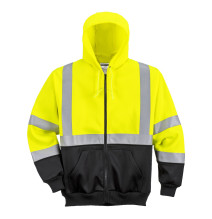 Teplý sveter - žltý HV/námornícky flís: 75 % polyester, 25 % bavlna - 300 g/m2, vysoký kontrastný golier: golier + ramená + bočný stredový zips, 2 vrecká, elastická rebrovaná manžeta