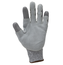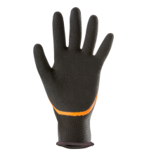 Šedý bezšvový úplet z HDPE, polyesteru, elastanu, dvojité nitrilové povrstvenie, hladký povrch na ¾ ruky a plný palec, čierny pieskovaný nitril na dlani, TPR vystuženie chrbtovej strany ruky a prstov, nitrilové vystuženie priestoru medzi palcom a ukazovákom, vystuženie zipsu.