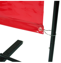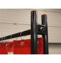 Mobilná clona Flex 4000, vybavená robustným rúrkovým rámom s rozmermi 2100 x 2000 mm, 2 otočnými ramenami s dĺžkou 1000 mm, 4 kolesami a 2 brzdami a zavesenou ochrannou clonou, poskytuje v priehľadnej oranžovej verzii ovládateľnú a modulárnu ochranu pred zváracím žiarením a rozstrekom. Bezfarebná verzia je ideálna na brúsenie.